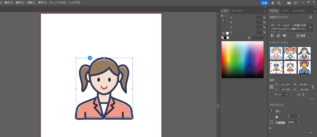 既存のイラストの色を、テキストで指定した色合いや雰囲気に自動で変更できる。