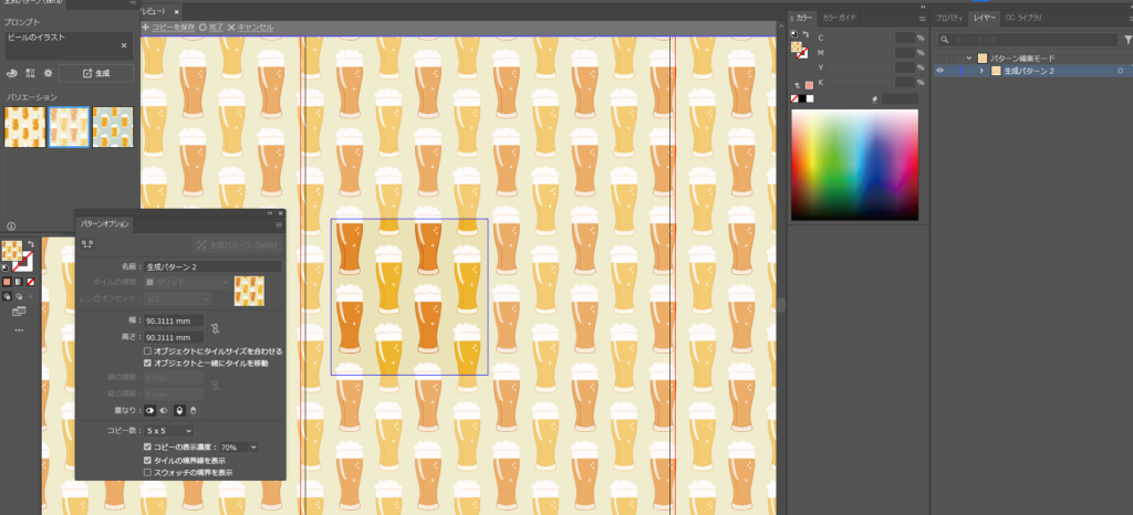 背景や模様など、繰り返し使用するパターンを簡単に作成