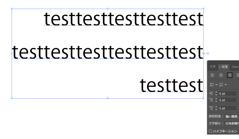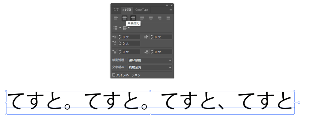 文字を左寄せ・中央揃い・右寄せなど、段落の調整ができる。