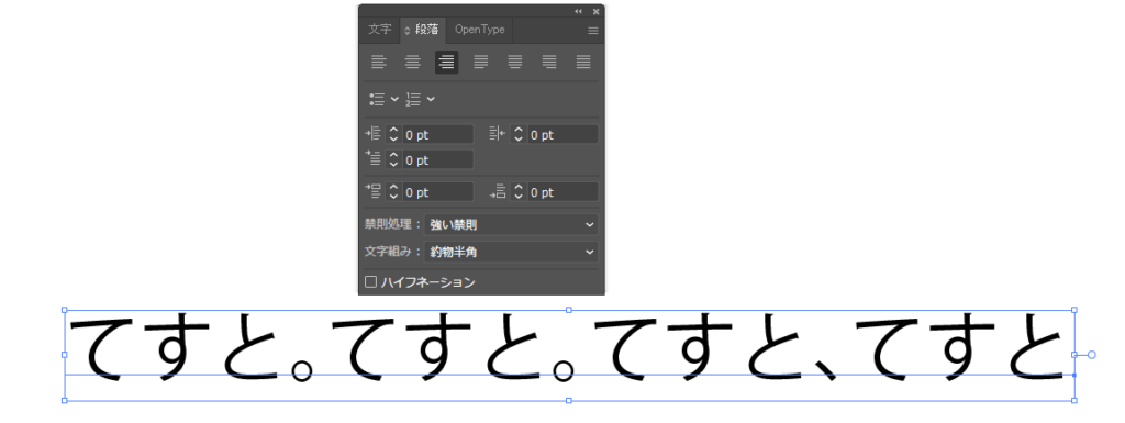 〈。〉や〈、〉などの文字間隔を調整できる。
