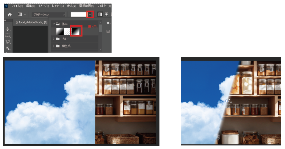 - 白い部分が可視、黒い部分が非可視となり、マスクの濃度で透明度を調整できます。